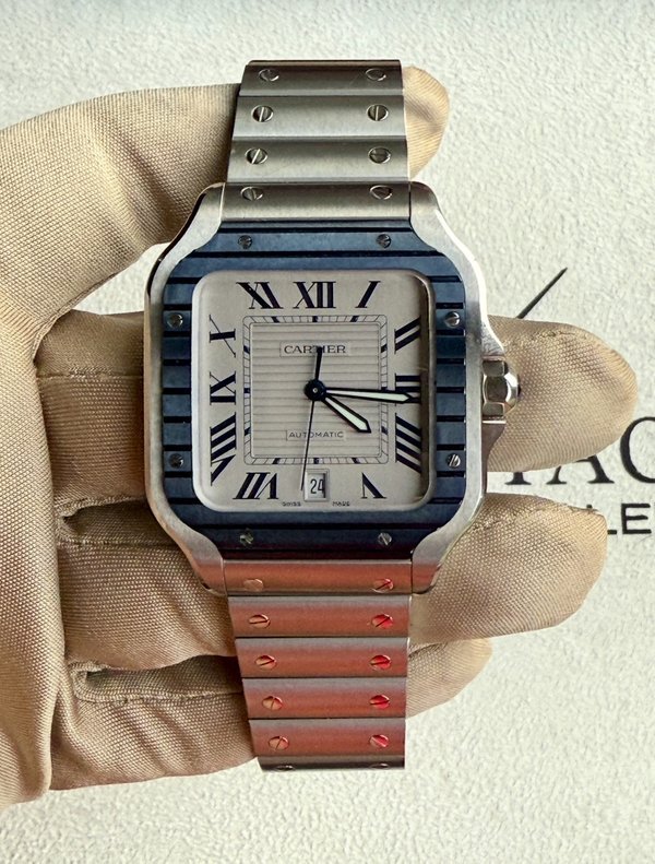 Cartier Santos Large Model Blue Markers PVD Bezel